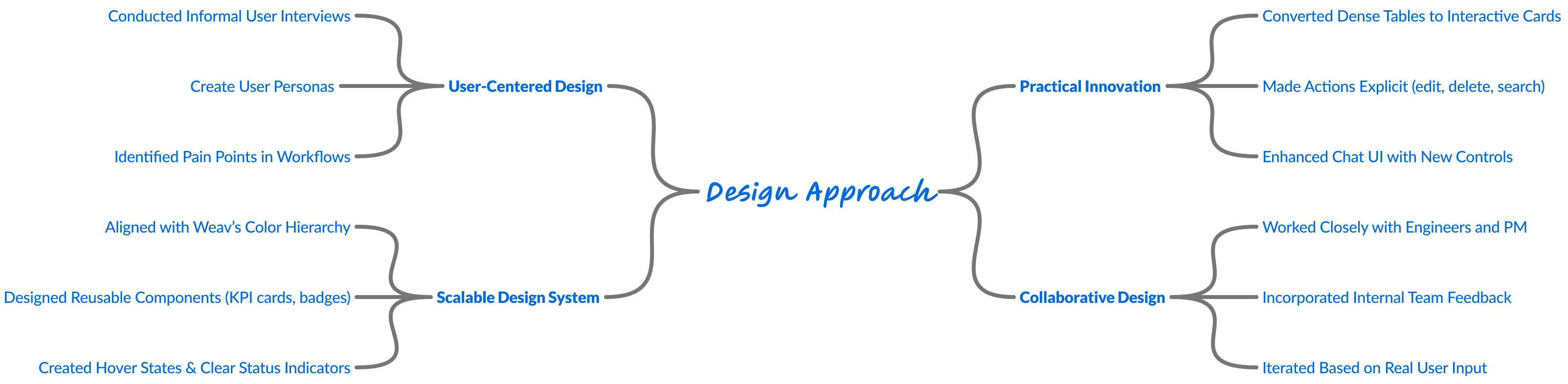 I followed a user-centered and collaborative design approach to deliver practical, scalable solutions.