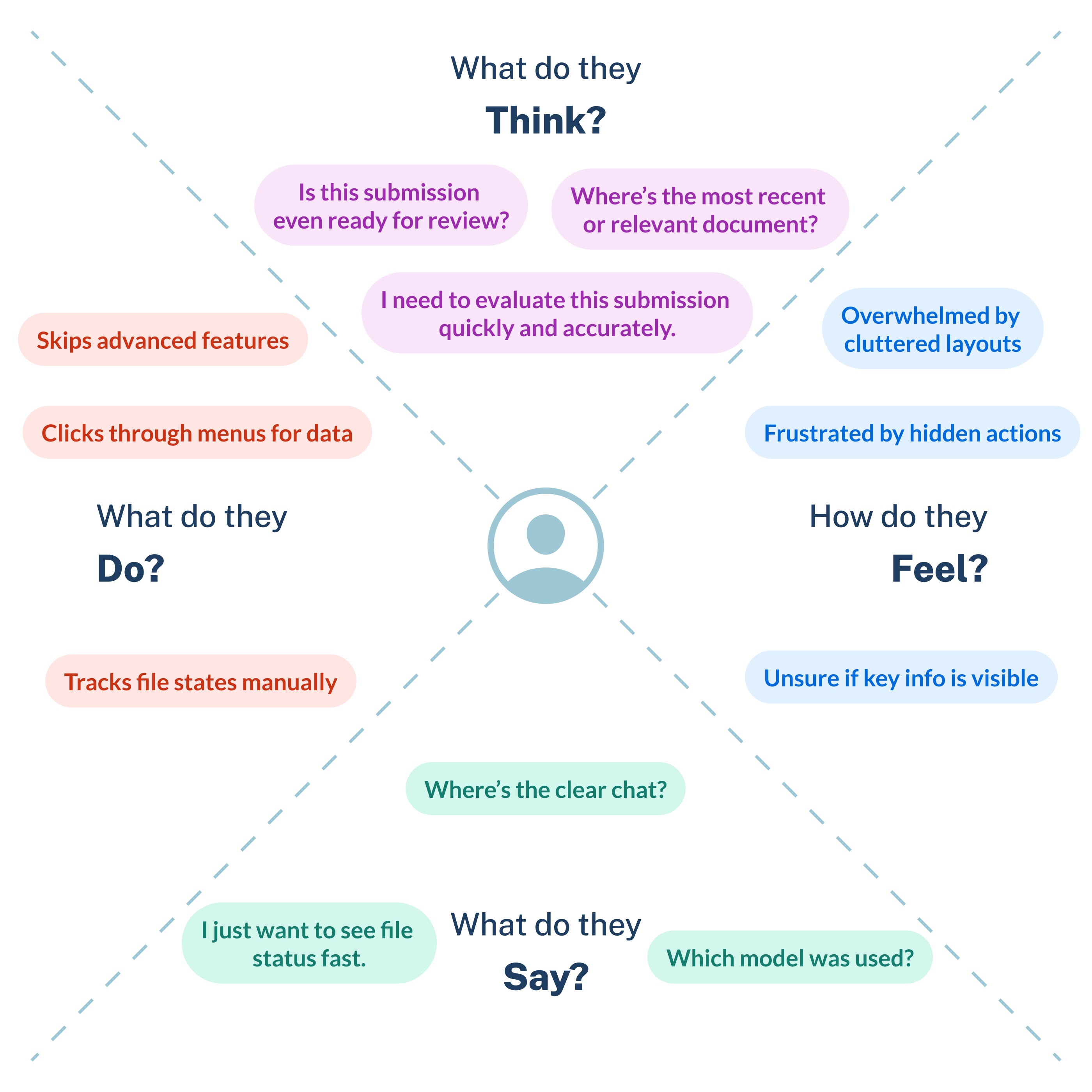 To better understand the users’ mindset and pain points, I created an empathy map focused on the underwriter experience